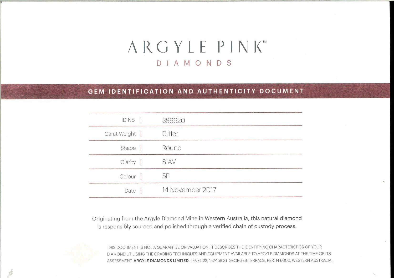 This 0.11ct round diamond boasts a wonderful Argyle colour and clarity, making it a great starting choice for collectors and investors. With measurements of 3.11 x 3.10 x 1.90mm, this certified diamond (Argyle Cert # 389620) is a unique and valuable addition to any collection.